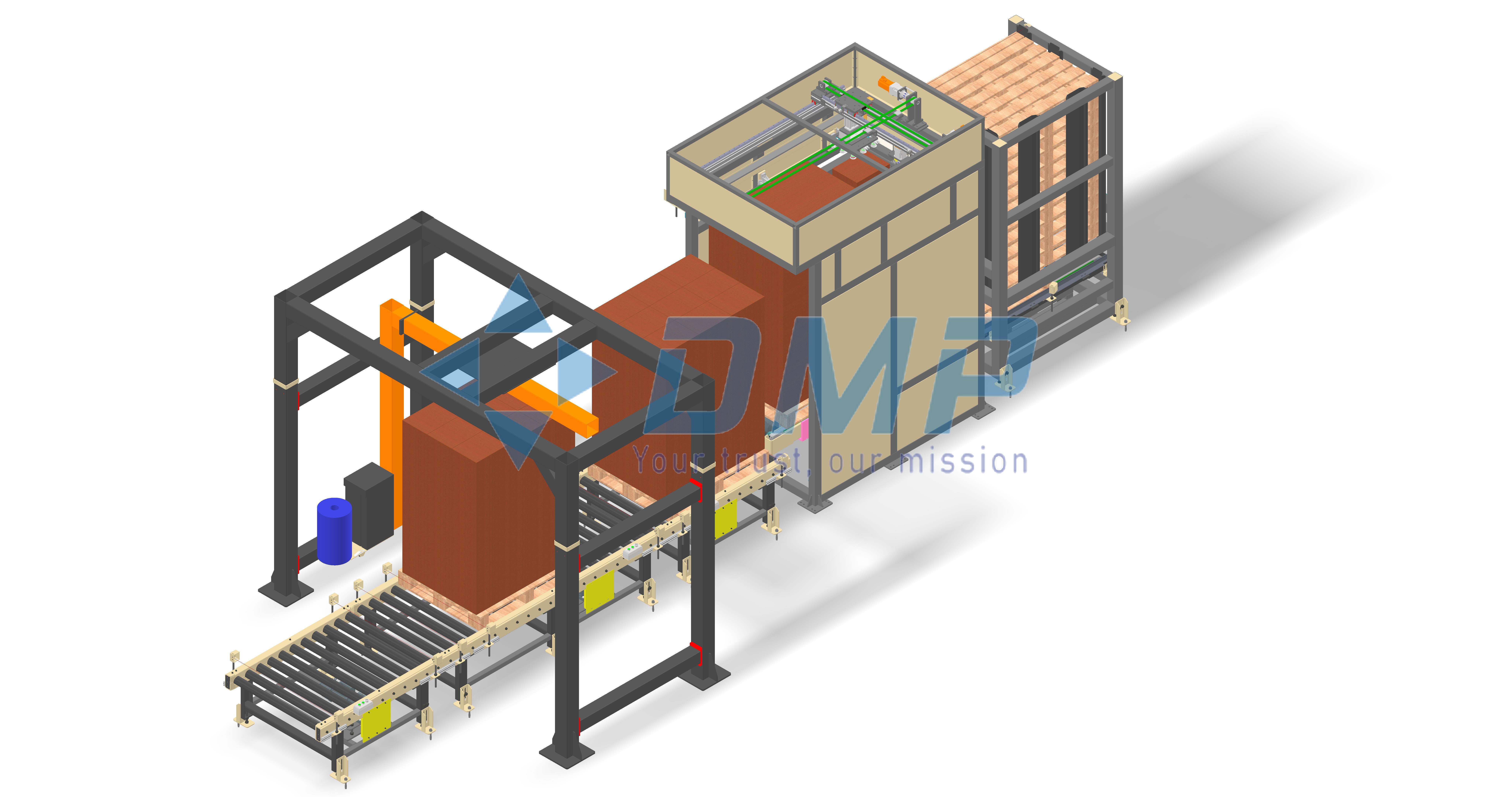 Máy xếp pallet 3 trục được sử dụng cho thực phẩm và đồ uống, các sản phẩm công nghiệp hóa chất. Máy phù hợp với tất cả các loại thùng carton, hộp nhựa, màng căng và thùng, và các loại bao bì khác, máy chủ bằng đai tốc độ kép, cơ cấu lái, phân loại sản phẩm, khu vực thùng carton , cơ cấu nâng, băng tải con lăn đầu ra ...